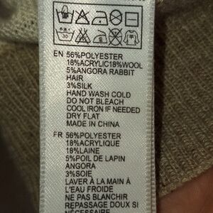 Forever21 Sweater Wool Blend SzM Long Sleeve Contrast Stripe Taupe/Creme V Neck