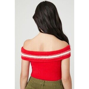 Forever21 Sweater-Knit Off-the-Shoulder Top junior's size large Off red/white