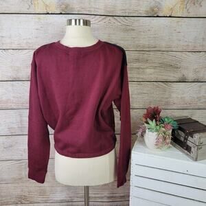 Forever 21 Sweatshirt FLIRT Graphic Drawstring Sweatshirt Size Medium. Graphic Long Sleeve Maroon Sweatshirt with large block letters spelling FLIRT. Drawstring. Semi-Cropped. Crew Neck. Intentional distressing on neckline. 60% Cotton, 40% Polyester. Size Medium. Excellent Used Condition.