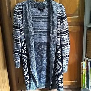Forever21 Sz S Black&White Aztec Print Open Front Cardigan
