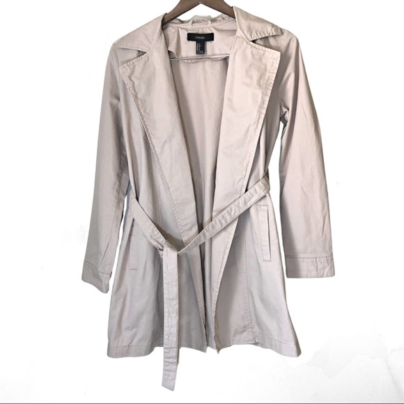 Forever21 Tan Cotton Tie Front Trench Coat Jacket