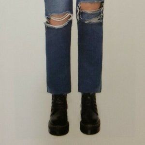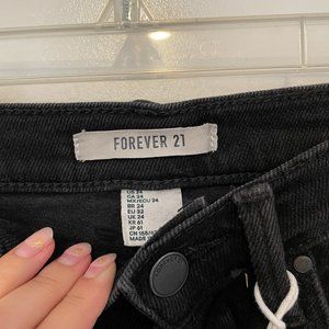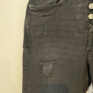 Black distressed jeans with a looser fit around the legs. Has a button up fly. Brand new. Never been worn with tags. Size 24.