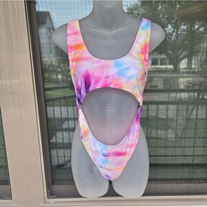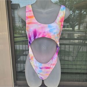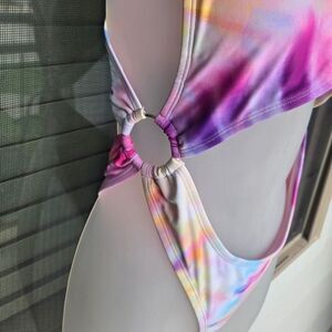 Forever 21 Tie Dye Sexy One Piece Bathing Suit Side Rings Sz M