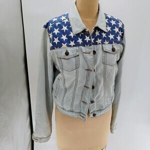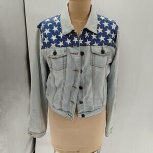 Forever21 USA American Flag Womens Distressed Short Denim Jean Jacket Sz M