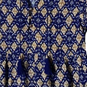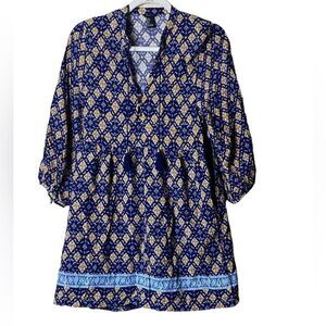 Forever 21 Wm’s Sz Sm Blue Yellow & White Print Boho Peasant Dress