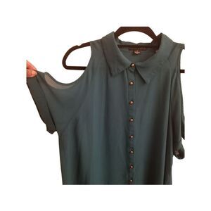 Size 1x Pit to pit 24" Length 30" Material: 100% polyester Button up. Open shoulders. Excellent preloved condition