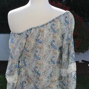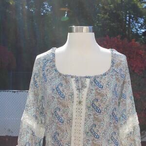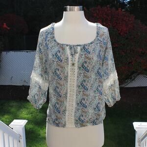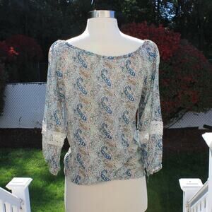 Forever 21 Boho Peasant Blouse Embroidered Lace Trim Paisley Print Size XS