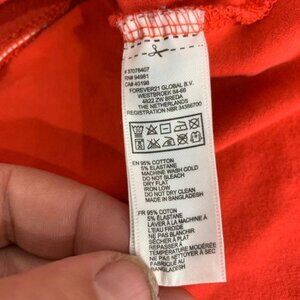 Forever21 Women's Red Mini Flared Mini Skirt Size Medium. Crafted from 95% Cotton and 5% Elastane, this vibrant red skirt offers comfort and style.