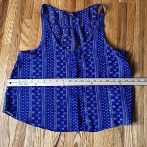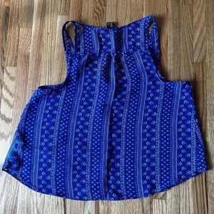 Forever21 light weight tank top, size small. Blue and white floral and stripe pattern. In good used condition, buttons down the front.