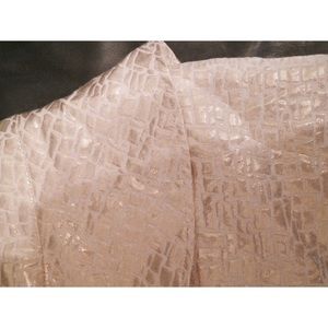 Off-white skirt with gold geometric textured pattern and ruffled top. Great fit with zip up back