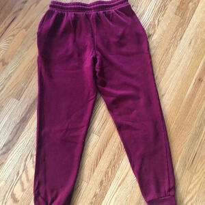 Forever21 sweatpants in a deep red tone. Size small, super cozy in good used condition. There is quite a bit of pilling with these sweatpants.