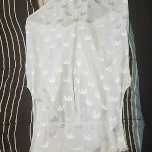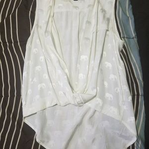 White satin/silk top with elephants