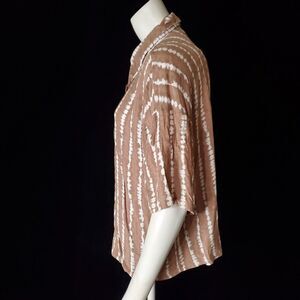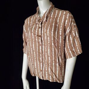 Forever 21+ brown and white tie dye style striped button down shirt.