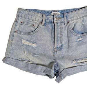 Forever 21 Distressed High Waist Cuffed Jean Short Light Wash 26