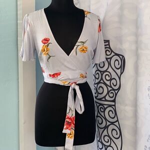 Adorable floral print crop wrap top. 100% Rayon fabric. NWOT. Never worn. Forever21 Size Large.