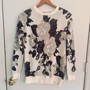 So cute and perfect for fall! Sweater with floral rose design. Excellent used condition, thick great quality material. This is super cozy, only selling because it’s too small for me!