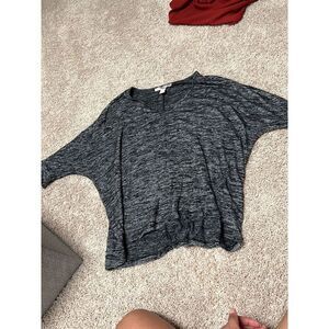 Forever21 Grey Marled Knit Piko 1/2 sleeve sweater top