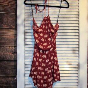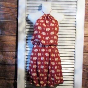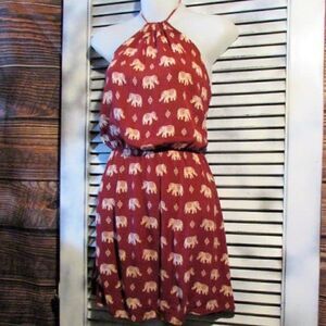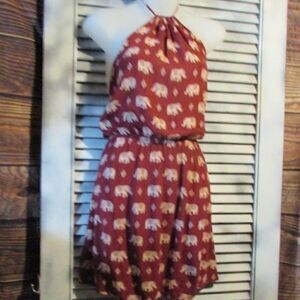 Super cute and lightweight dress from Forever 21 featuring elephants. Size medium. Tie neck. Elastic waist. Open back. 100% rayon. Machi54ne washable. Made in Vietnam. Excellent preowned condition. Nonsmoking home.