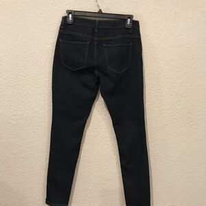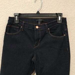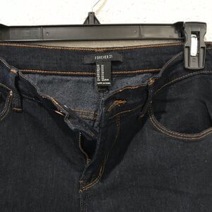 Size 27 Forever 21 dark wash mid rise stretch skinny denim jeans. Barely worn, clean, and in excellent like new condition! 14” across waist, 28” inseam, 8” rise.