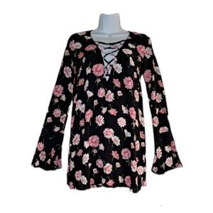 Forever 21 Floral Criss Cross Bell Sleeved Mini Tunic Dress
