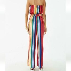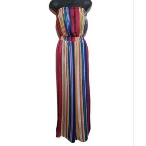 Forever21 Multicolored Stripe Strapless Silk like Jumpsuit Sz Small