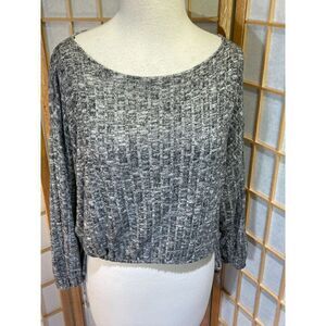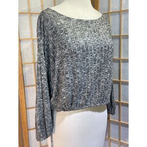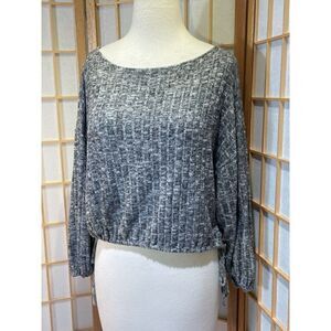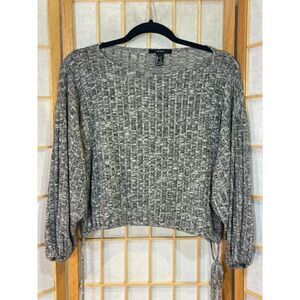 Absolutely adorable crop top from Forever 21. Size small. Drawstring waist. 3/4 sleeves with elastic cuffs. 54% rayon, 44% polyester, 2% spandex. Hand wash. Made in China. Excellent condition. Nonsmoking home.