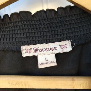Forever 21 Y2K black short sleeve v neck top with sequin embellishment, size L. In gently preowned condition, no flaws noted.