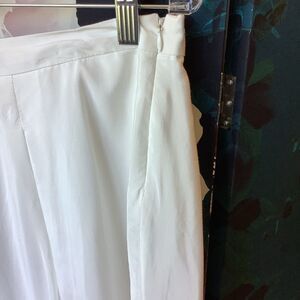 Oh so adorable! White skirt with sheer hem. Partially lined. Side zipper. Classy and super summer vibe. 100% Rayon. Size large.