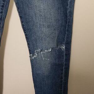 Cute jeans with distressed hem and hole in one knee