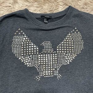 Cozy gray sweatshirt with image of eagle made out of studs. Very comfortable casual outfit. Size medium.