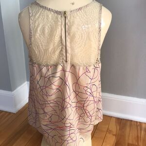 Forever 21 tan scribble print tank. Lace yoke in back with exposed zipper. Size medium 100% polyester. Lace 109% nylon. Excellent condition. Nonsmoking home.