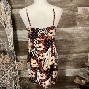 Great condition Forever 21 sundress with adjustable straps, tie front and side zipper. Colors of white, black and rust, Nice, light material.