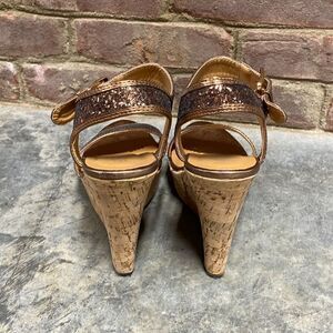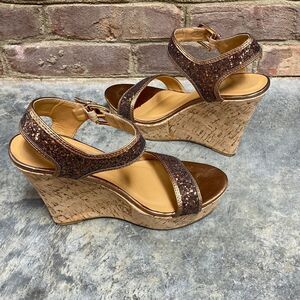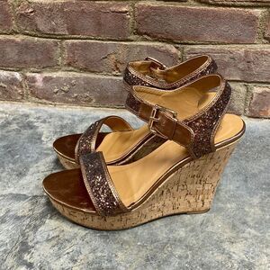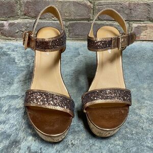 Forever Bronze Sparkle Wedge Sandal Size 8