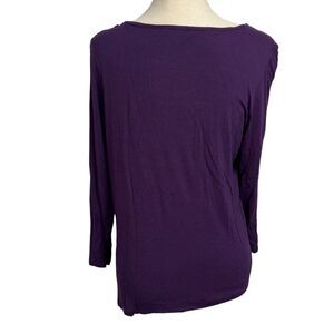 Forever Fashion Petite Solid Purple Round Neck Ruffle quarter Sleeve Spandex PXL