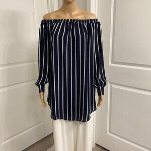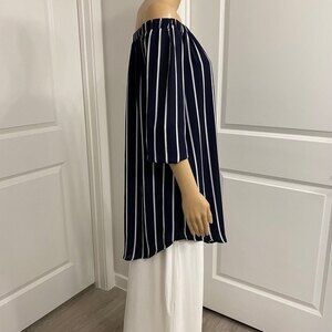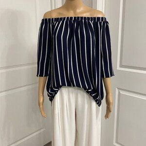 Forevery 21 Contemporary Collection Off Shoulder Top. Blue/White Stripe. Small.