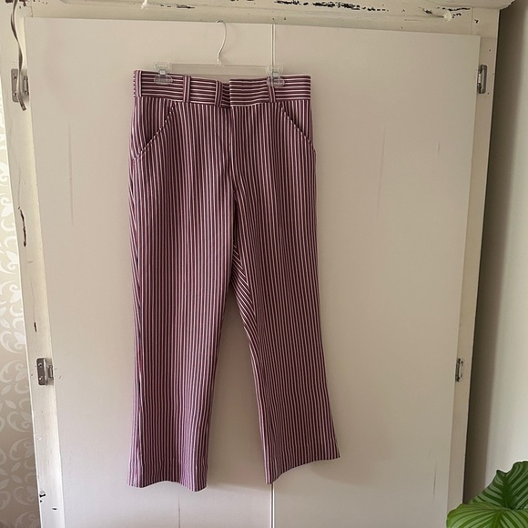 Forge LTD vintage Chic straight leg pants with red and white and navy stripes. Ideal for a stylish look, with side hidden pockets and one pocket at back of trouser. ( doesn’t have size tag) best fits a M