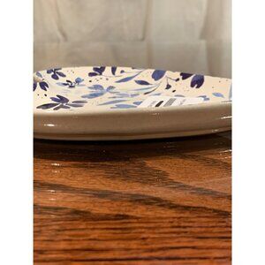 Stylish ceramic spoon rest featuring a heart shape with a blue floral design. Functional and decorative kitchenware. 6.25” long, 4.75” wide, 5/8” tall.