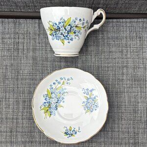 Forget Me Not Teacup and Saucer Set Floral Blue Regency Bone China