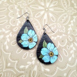 Forget-Me-Not Hand Painted Wood and Resin Teardrop Earrings