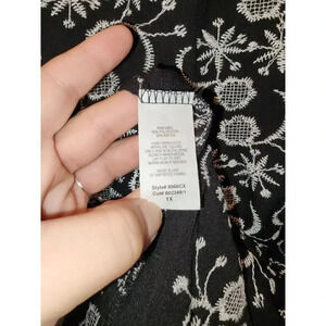 The stitching is phenomenal! Size 1X, Made in USA. 50 poly 50 Rayon.