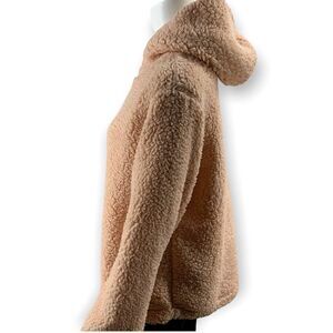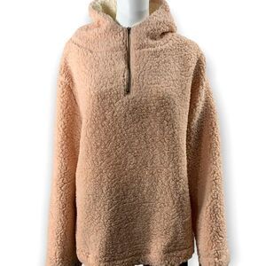 FORGOTTEN GRACE Size Medium Hoodie 1/4 Zip Faux Shearling Pullover In Blush NEW