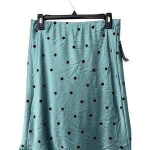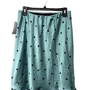 Forgotten Grace Polka Dots Skirt Ruffled Bottom Satin Blue Black Women's L NWT