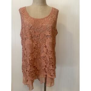 Forgotten Grace Tank Top Womens 2XL Pink Lace Floral Sheer Layered Boho Style