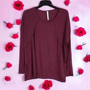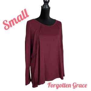 Forgotten Grace Top Women Size Small Red Pullover Stretch Long Sleeves Raw Seam