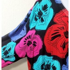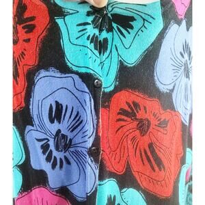 Forgotten Woman Black Multicolor Floral Print Button Cardigan Sweater 2X Plus