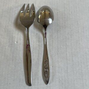Fork and Spoon Serving Set Oneida Supreme Japan The Rose Floral Flatware Salad