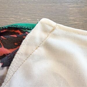 Good pre-owned condition with light overall wear. Back shoulder seam has been neatly altered for better fit and shape (see photos). Fabric and print remain vibrant and smooth with no holes or major flaws.
