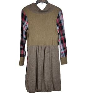 Forla Paris Dress Size Medium Patchwork Embroidered Bubble Hem Cotton Boho Knit