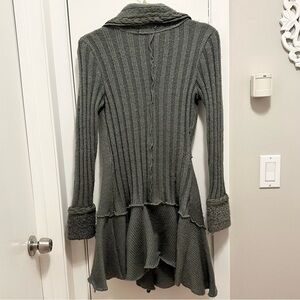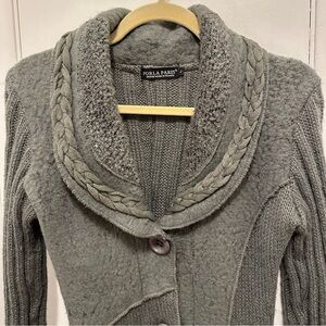 Forla Paris Gray Mixed Media Long Cardigan L Sweater Y2K 90s wool knit braid