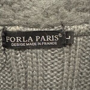 Forla Paris Gray Mixed Media Cardigan L Sweater Y2K 90s boho wool knit braid